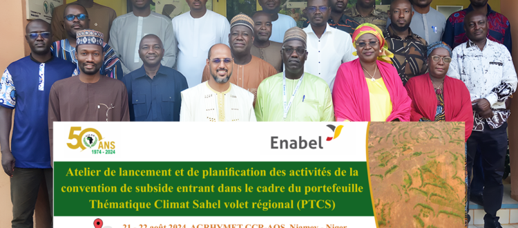 Niamey, mercredi 21 Août 2024- AGRHYMET, le Centre Climatique Régional pour l’Afrique de l’Ouest et le Sahel (CCR-AOS), a accueilli l’atelier de lancement officiel des activités de la convention de subside de renforcement de capacités des acteurs régionaux et nationaux pour la production, la diffusion et l’utilisation des données et services en matière de suivi de la dégradation des terres signée le 26 juin 2024 entre ENABEL, l’Agence belge de développement, et AGRHYMET. Cet événement marque une nouvelle étape dans la coopération régionale pour la gestion durable des terres et la lutte contre la dégradation des sols en Afrique de l’Ouest et au Sahel.